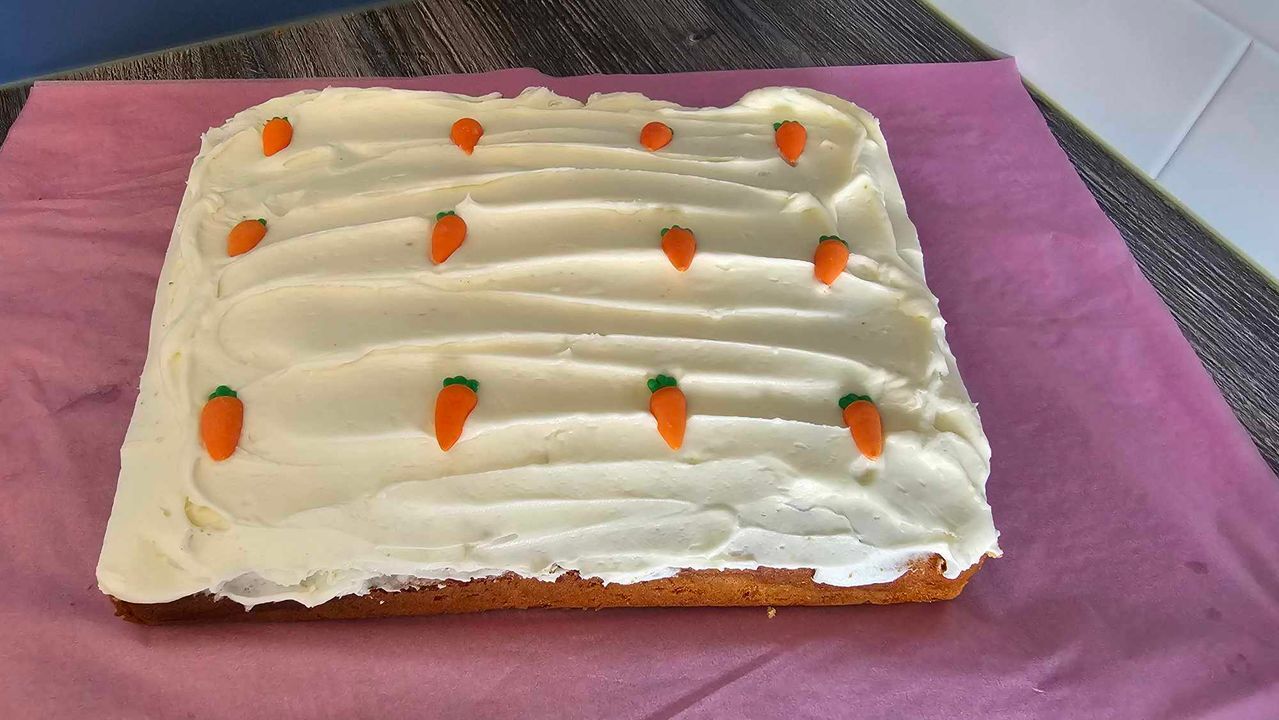 Carrot Cake Traybake (serves 12).  Succulent Carrot sponge with mascarpone cheese topping